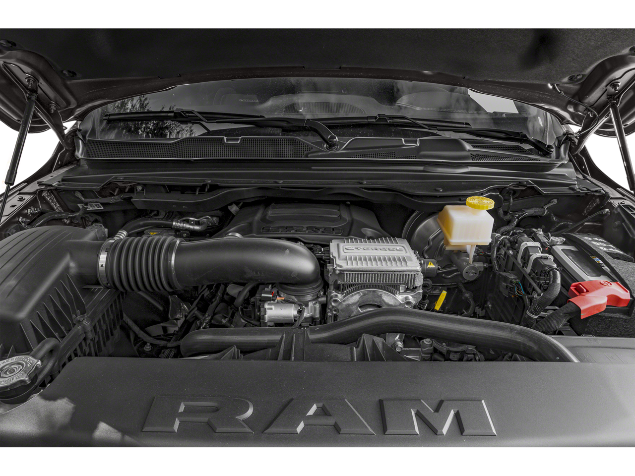 - Active Noise Control System Heavy Duty Engine Cooling Passive Tuned Mass Damper GVWR: 7100 lbs Dual Rear Exhaust w/Bright Tips HEMI Badge 23 Gallon Fuel Tank 18" Aluminum Spare Wheel